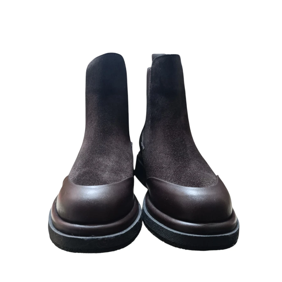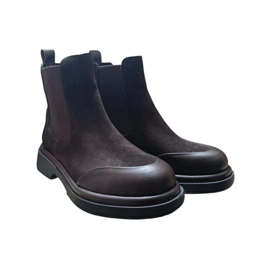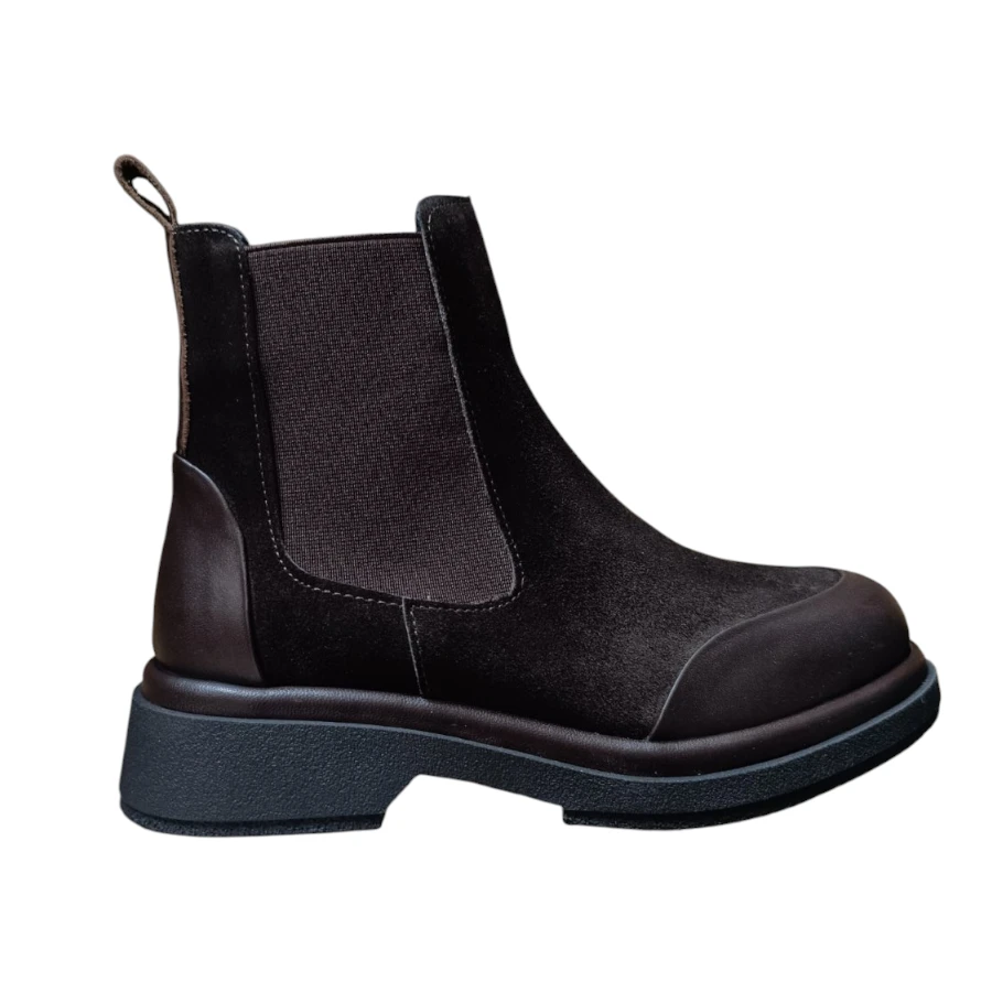 Кожни елегантни кафе велур чизми изработени од 100% природна кожа. Внатрешноста е обложена со текстил кој нуди удобност и топлина за студените зимски денови. Овој модел има ластик од двете страни.