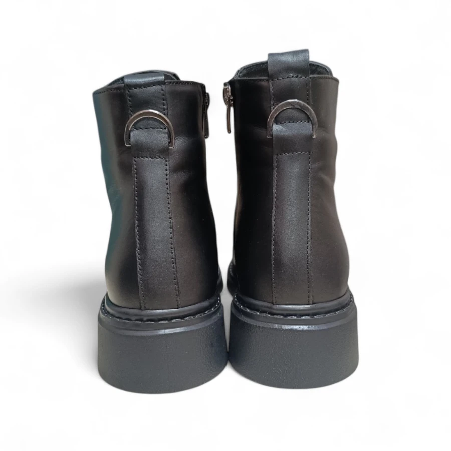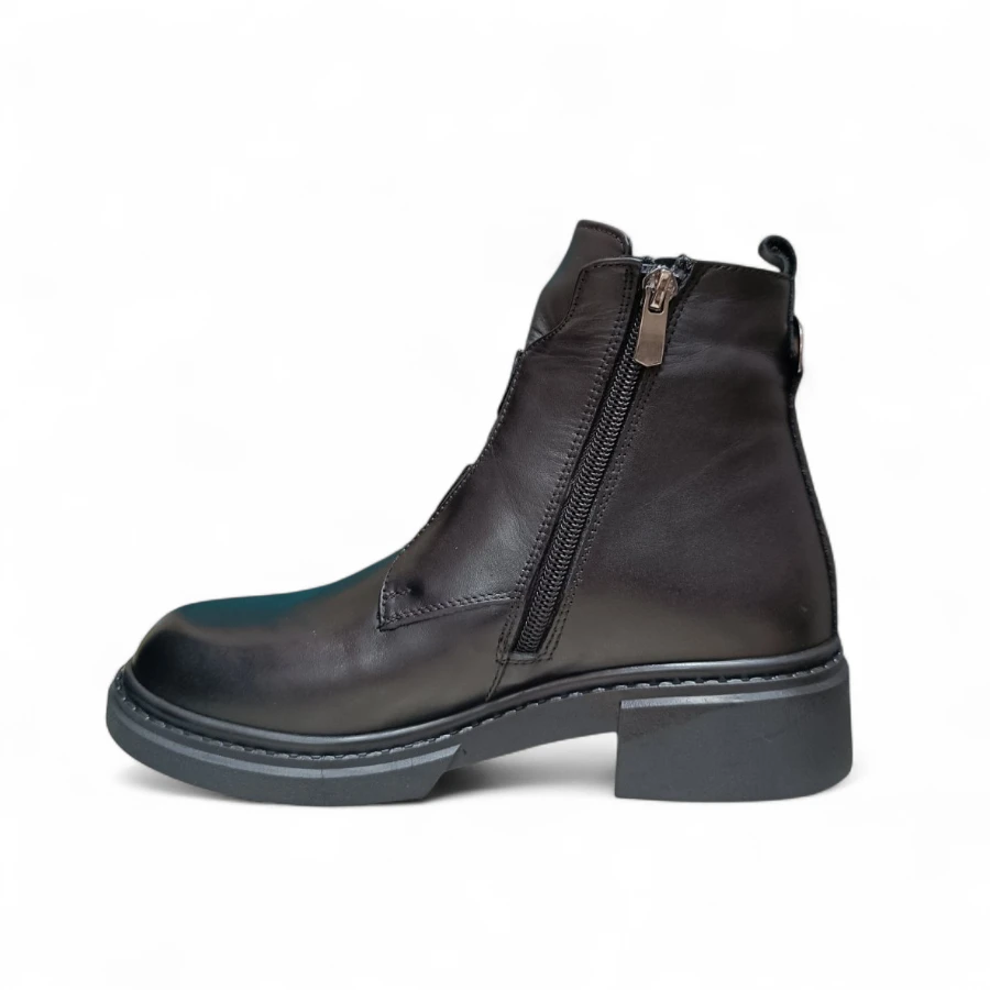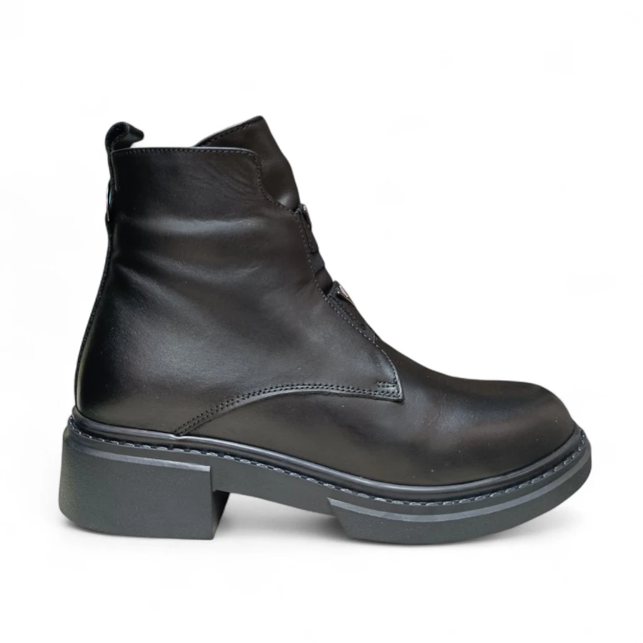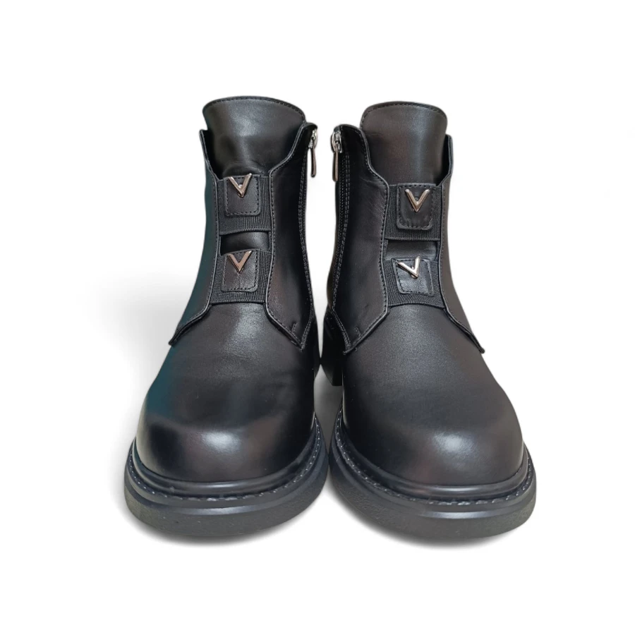 Кожни елегантни црни чизми изработени од 100% природна кожа. Внатрешноста е обложена со крзно кое нуди удобност и топлина за студените зимски денови. Овој модел има ластик во предниот дел и функционален патент од внатрешната страна.