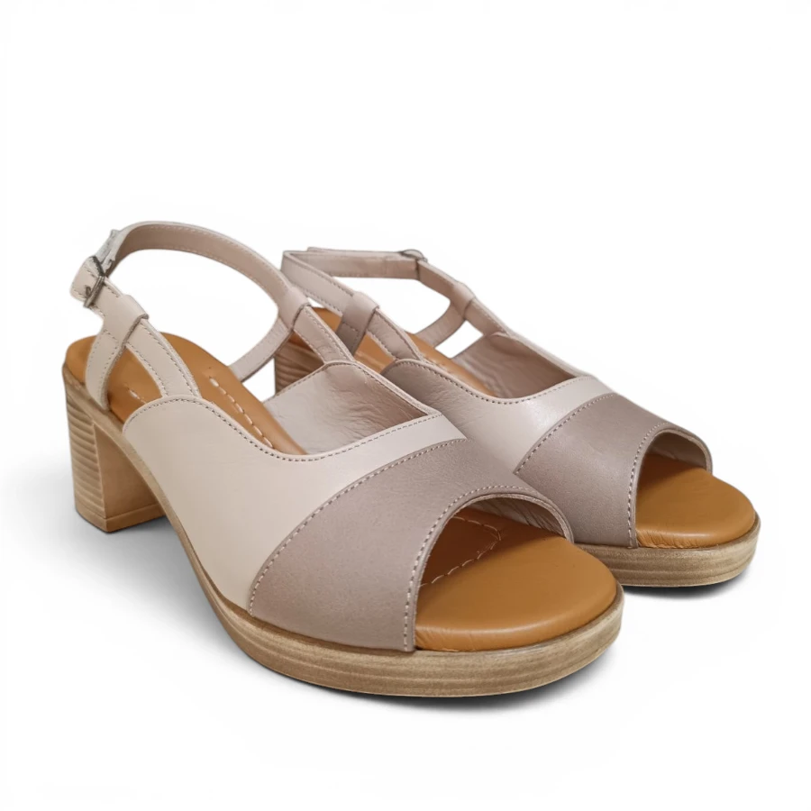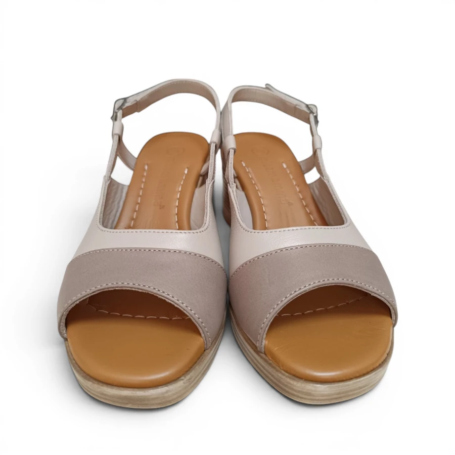 Елегантни кожни сандали во драп комбинација. Изработени се од 100% природна кожа, којашто овозможува удобност на стапалото во текот на целиот ден.